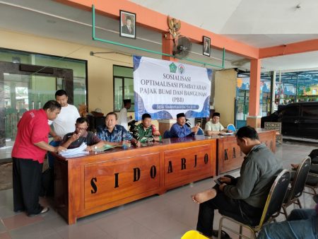 SIDOARJOterkini – Dalam upaya meningkatkan kesadaran masyarakat terhadap kewajiban membayar Pajak Bumi dan Bangunan (PBB), Babinsa Koramil 0816/08 Jabon, Sertu Khairudin Abdullah, turut serta dalam kegiatan Sosialisasi Optimalisasi Pembayaran PBB yang digelar di Pendopo Desa Tambak Kalisogo, Kecamatan Jabon, Kabupaten Sidoarjo, Sabtu (22/03/2025).