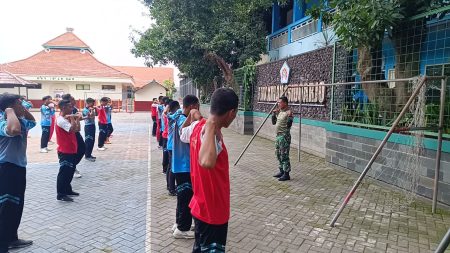 Babinsa Krian Gembleng Fisik Pelajar SMKN 1 Krian