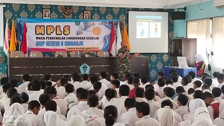 SIDOARJOterkini – Babinsa Koramil 0816/01 Sidoarjo Peltu Asnuri memberikan pembekalan Wawasan Kebangsaan (Wasbang) dalam kegiatan Masa Pengenalan Lingkungan Sekolah (MPLS) siswa baru di SMPN 6 Sidoarjo di Bluru kidul Kabupaten Sidoarjo, Selasa 18 Juli 2023.