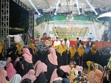 “Acara malam ini sangat berarti bagi kita semua. Pesan bahaya narkoba tersampaikan dengan lebih mengena melalui gebyar sholawat dan pengajian. TNI bersama Polri dan pemerintah desa akan terus bersinergi mengedukasi masyarakat, terutama generasi muda,” ujarnya.