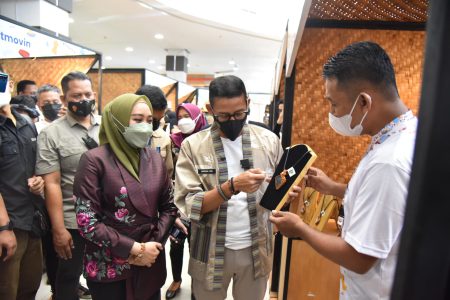 (SIDOARJOterkini) – Kabupaten Sidoarjo menjadi salah satu dari 16 kabupaten/kota di Indonesia tempat penyelenggaraan Apresiasi Kreasi Indonesia (AKI) 2022. Program Kementerian Pariwisata dan Ekonomi Kreatif/Kemenparekraf RI itu di gelar di Lippo Plaza Sidoarjo. Program pengembangan ekonomi kreatif itu salah satunya diisi pameran produk dari para pelaku ekonomi kreatif. Pagi tadi kegiatan itu dibuka langsung Menteri Pariwisata dan Ekonomi Kreatif RI Sandiaga Salahuddin Uno, Jumat, (2/9). Ketua Dewan Kerajinan Nasional Daerah (Dekranasda) Kabupaten Sidoarjo Hj. Sa’adah Ahmad Muhdlor M.Hum hadir dalam kesempatan itu.