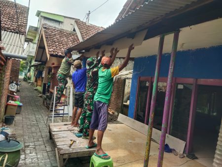 SIDOARJOterkini – Anggota Koramil 0816/16 Waru melaksanakan bedah rumah milik warga melalu program Rutilahu Mandiri di Desa Waru Kecamatan Waru, Senin 11 Maret 2024.