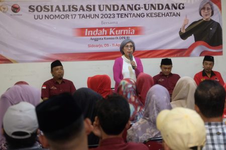 Untuk meningkatkan pemahaman publik, Anggota Komisi IX DPR RI dari Fraksi PDI Perjuangan, Indah Kurnia, menggelar sosialisasi UU Kesehatan kepada warga Sidoarjo. Acara tersebut berlangsung di Aula Rumah Aspirasi Indah Kurnia, Pondok Tjandra, Waru, Sidoarjo, pada Kamis (10/4), dan dihadiri oleh kader PDI Perjuangan serta warga sekitar.