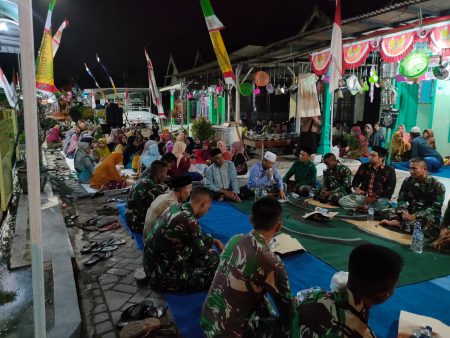 (SIDOARJOterkini) – Satgas TMMD ke 114 Kodim 0816/Sidoarjo melaksanakan doa bersama pada malam tasyakuran HUT kemerdekaan RI ke 77 Tahun yang bertempat di halaman depan RT 02 RW 01, di sepanjang jalan RT 06 RW 03 dan RT 15 RW 08 Desa Rejeni Kecamatan Krembung Kabupaten Sidoarjo. Selasa, 16 Agustus 2022.