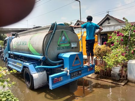 SIDOARJOterkini – Perumda Delta Tirta Kabupaten Sidoarjo bersama Badan Penanggulangan Bencana Daerah (BPBD) Kabupaten Sidoarjo menyalurkan 200 ribu liter air bersih dan toilet portable untuk korban banjir di Kabupaten Sidoarjo.