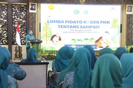 SIDOARJOterkini — Tim Penggerak (TP) PKK Kabupaten Sidoarjo melalui Pokja I menggelar Lomba Pidato Kader tentang Sampah yang dirangkai dengan kegiatan Sosialisasi Inovasi dan Strategi Pengelolaan Sampah Rumah Tangga Berbasis Masyarakat, Jumat (31/10/2025), di Pendopo Delta Wibawa.